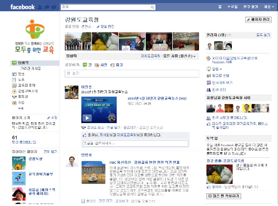 도교육청은 페이스북 통해 팬페이지(페이지명,강원도교육청)를 개설하고 주요 정책 및 강원교육뉴스, 교육감의 시사토론 소견 발표 등의 콘텐츠를 업데이트했다. 또한 강원도교육감도 개인 페이스북을 개설하고 교육감 동정 및 트위터 알림 등 직무 수행 소식을 수시로 올려 현장성과 실시간성에 기반 한 도민과의 소통을 한층 더 강화한다는 계획이다.