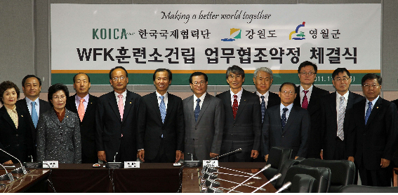 시사투데이 김준 기자] 강원도는 해외봉사 인력육성을 위해 한국국제협력단에서 추진하는 월드 프랜드 코리아(World Friends Korea) 제2훈련소를 도내 영월군에 건립하기로 하고 강원도 최문순 지사와 한국국제협력단 박대원 이사장과 영월군 박선규 군수 간 업무협조약정을 11일 체결했다.