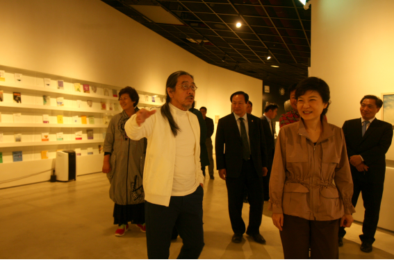 이 작가는“오늘 화천을 찾아 주신 것도 국민 대화합에 증거일 뿐 아니라 문화예술에 관한 깊은 관심의 표현이라고 생각하고 감사드린다”며“한글날을 다시 공휴일로 만들어 한글에 대한 국민들의 자부심이 더 높아지고, 세계최고 문화유산이기도한 한글을 더 세계적으로 알려야 되지 않겠느냐며, 이제 대선 후보가 되셨으니 이 점을 꼭 검토해주셨으면 바란다”고 말했다. 이에 박근혜 대통령 후보는 “문화는 국민을 통합하고 화합을 이루는데 구심점이 되며 국민의 공감을 이끌어낼 수 있는 중요한 가치라고 생각한다”고 말했다.