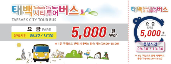 또한 전국에서 유일하게 시티투어버스 티켓 소지자는 오전 9시부터 오후 6시까지 자유롭게 태백시 시내버스 이용할 수 있는 ‘시내버스 원스톱’을 도입해 관광객들의 편익을 극대화할 계획이다.