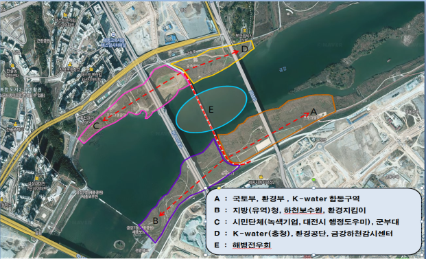 국토부는 하천구역내 쓰레기를 수거해 하천환경 개선, 수질오염물질의 강물 유입 사전에 차단, 이미 유입된 수중쓰레기는 해병전우회 등 시민단체와 협력해 잠수장비 등을 활용해 수거할 계획이다.