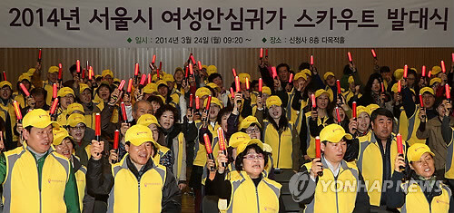 서울시는 24일 오전 10시 20분 신청사 다목적홀에서 박원순 서울시장, 서울시의회의원, 서울지방경찰청 생활안전부장 등이 참석한 가운데 여성안심귀가스카우트 발대식을 개최했다.