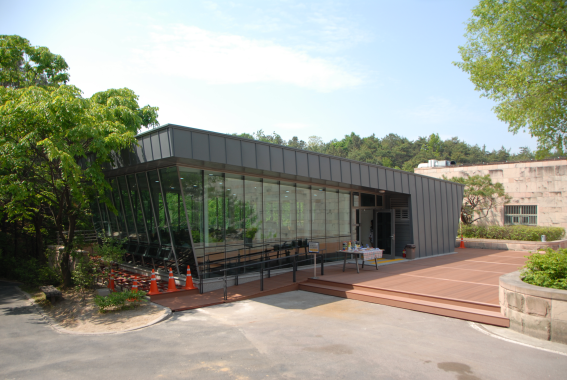 숲속배움터는 본관 건물 뒤편 자연과 어우러진 숲속에 자리 잡고 있다. 지상 1층 건축면적 123㎡ 규모로 2013년 11월에 준공해 지난 4월 내부 인테리어공사를 완료했다. 수용인원은 60명으로 초등학교 2개 학급정도가 동시에 프로그램에 참여할 수 있다.