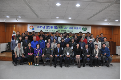 군은 양양군 문화복지회관에서 열린 ‘2015년도 귀농귀촌 아카데미 수료식’에서 51명의 예비영농인들을 대상으로 7개월간의 모든 교육과정을 마무리 하고 지난 18일 수료증을 교부했다. 또한 지난 2011년부터 도시민 농촌유치 지원사업의 일환으로 귀농귀촌 아카데미를 운영해 왔다. 특히 올해는 단계별로 실시된 맞춤형 교육을 통해 예비 귀농인과 귀촌인들의 현지 적응력 향상을 더욱 높였다는 평가가 나왔다.