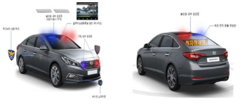 이를 위해 앞 범퍼 부분과 앞 유리창 위쪽에 경광등이 설치되고 뒷 유리창 안쪽에 표출 전광판과 경광등이 설치된다. 경광등과 전광판은 점등 시 밖에서 보이지만 평상시에는 노출되지 않도록 설계됐다.