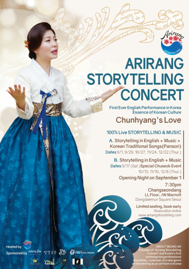시사투데이 김준 기자] 메노뮤직은 국내1호인 글로벌 스토리텔러 김승아씨가 아리랑 스토리텔링 콘서트인 ‘Chunhyang's Love’의 상설공연을 국내 최초로 진행한다고 25일 밝혔다. 이번 공연은 오는 9월 1일부터 12월 22일까지 격주 목요일 오후 7시 30분, JW동대문메리어트 LL층 창선당에서 진행된다.
