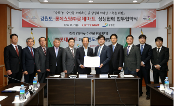 시사투데이 김준 기자] 강원도와 롯데마트는 7일 롯데쇼핑(주)롯데마트 김종인 대표이사가 직접 도를 방문해 강원 농·수산물 판매촉진 및 상생파트너십 구축을 위한 업무협약을 맺었다.