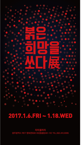 시사투데이 김준 기자] 붉은 닭의 기운을 담아 2017 丁酉年 안녕과 소원성취, 부귀영화, 장수, 백년해로를 예술로서 찾고자 전국 9개 지역 미술작가 13명이 한자리에 모여 오는 2017년 1월 6일부터 18일까지 자미갤러리(광주광역시 소재)에서 ‘붉은 희망을 쏘다 展’을 개최한다.