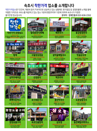 [시사투데이 김준 기자] 속초시는 저렴한 가격과 친절한 서비스로 물가안정에 기여하고 있는 착한가격업소에 대한 일제정비를 완료하고 관내 19개의 착한가격업소를 선정했다.