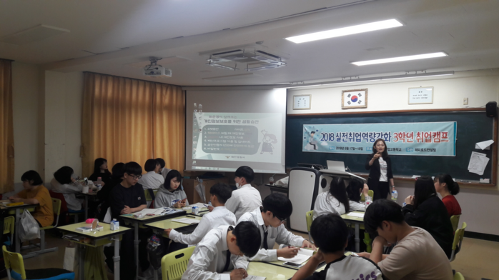 [시사투데이 김준 기자] 화천정보산업고등학교는 17, 18일 양일간 교내 각 학급, 실습실과 시청각실 등에서 3학년 학생들을 대상으로 취업역량강화캠프 운영 주관사인 해피로드컨설팅과 함께 ‘취업역량강화 취업캠프’를 개최했다.