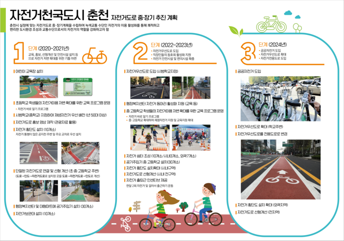 [시사투데이 김준 기자] 춘천시는 내년부터 2024년까지 3단계에 걸쳐 ‘자전거 천국도시 춘천 만들기’ 프로젝트를 추진한다.