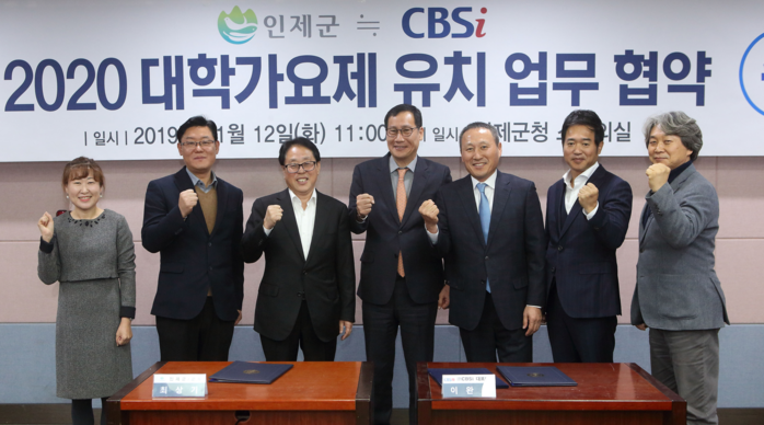 군은 행사주관사인 CBSi와 인제군청 소회의실에서 ‘2020 대학가요제 인제잔디구장 유치협약’을 체결하고 성공개최를 통해 평화지역 전국 인지도 상승과 지역경제 활성화를 이뤄낸다.