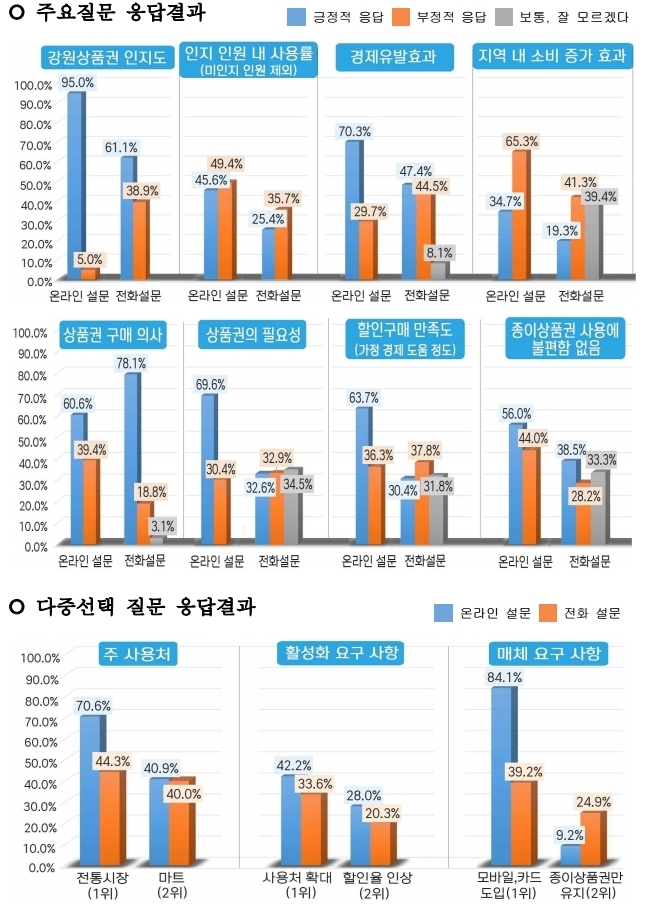 지역별 가맹점 분포가 여전히 춘천, 원주, 강릉 등 일부지역에 집중돼 강원도 전역에서 상품권 재유통·재사용되기 위해서는 사용점이 고르게 분포될 수 있도록 가맹점을 지속적으로 확대할 필요성도 확인했다.