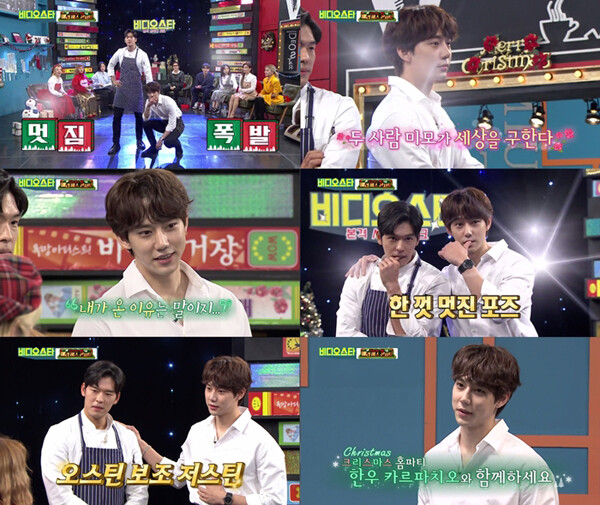 진주형은 지난 17일 방송된 MBC every1 '비디오스타' 크리스마스 특집 ‘메리 비스 콘서트’에 출연한 알리, 에일리, 손승연, 김종서, 강균성에게 요리를 대접하기 위해 오스틴강과 함께 등장해 꽃미모를 발산해 시선을 끌었다.