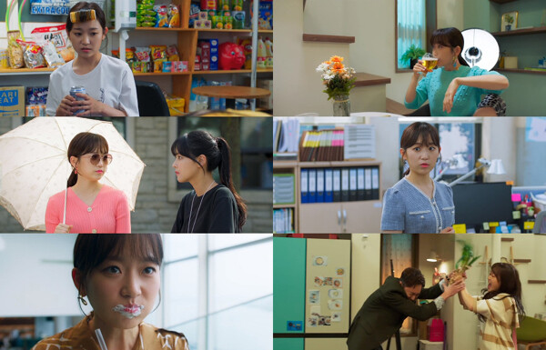 느끼한 맞선남 앞에서는 생크림이 올라가 있는 음료를 원샷, “이렇게 먹는 사람 처음보냐”며 속이 뻥 뚫리는 카타르시스를, 과하게 들이대는 박현수(허정민 분)에게는 대파싸대기까지 날리는 등 ‘쎈 언니’의 면모를 보여줬다.