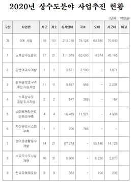 강원도는 노후 상수도 정비, 스마트 관리체계 구축, 농어촌 생활용수 개발, 소규모 수도시설 개량 등 상수도 분야에 예산을 투입해 지역경제 활성화에 기여할 계획임을 29일 밝혔다.