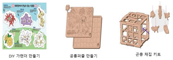 이번 체험꾸러미는 강원도립화목원에서 만날 수 있는 희귀·특산식물 및 산림박물관 기획전시와 연계된 3종 교구재다. ‘식물 DIY 가랜더 만들기’, ‘공룡퍼즐’, ‘곤충채집키트’로 구성돼 있다.
