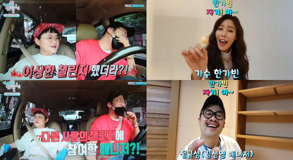 지난 11일 방송된 ‘전지적참견시점’에서 라디오 스케줄을 소화하기 위해 정규성 매니저와 동승한 김신영이 자신의 노래 ‘주라주라’ 챌린지는 하지 않은 매니저가 한가빈의 ‘자기! 아~’ 챌린지를 한 것을 알고는 질투가 섞인 분노(?)를 폭발시키는 모습으로 큰 웃음을 줬다.