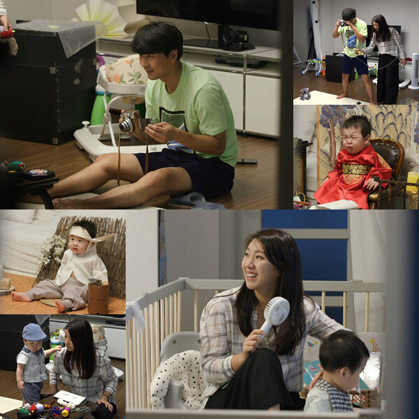 그리고 담호는 왕의 곤룡포부터 평민의 한복, 백화점에서 산 S/S 턱시도까지 다양한 의상을 소화하면서, 최연소 임금님부터 통통한 배가 드러난 돌쇠, 꼬마 회장님까지 천의 얼굴 매력을 한껏 발산했던 터. 필연 부부는 홀린 듯이 연신 카메라 셔터를 눌러댔지만, 촬영이 계속되자 역대급 순둥이였던 담호가 난생처음 찡찡이로 변신, 애를 태웠다. 소품 모자가 답답한지 연신 벗어던지는 담호를 달래며 필연 부부가 홈 스냅사진을 끝까지 완성할 수 있을지 관심이 모이고 있다.
