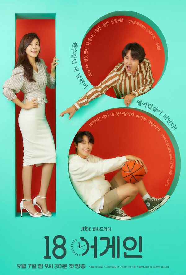 ‘모범형사’ 후속으로 오는 9월 7일 첫 방송 예정인 JTBC 새 월화드라마 ‘18 어게인’(연출 하병훈/ 극본 김도연, 안은빈, 최이륜/ 제작 JTBC스튜디오)은 이혼 직전에 18년전 리즈시절로 돌아간 남편 이야기. 특히 드라마 ‘고백부부’로 섬세한 연출력을 인정받은 하병훈 감독이 JTBC로 이적한 후 처음으로 연출하는 드라마로 기대를 모으고 있다.