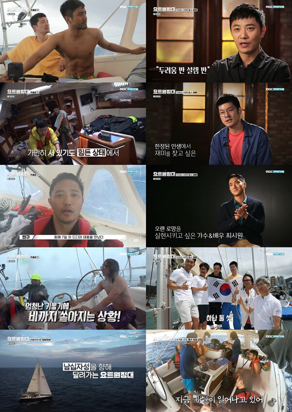 8월 17일 MBC에브리원 ‘요트원정대’가 첫 방송됐다. ‘요트원정대’는 모험을 꿈꿔왔던 네 남자가 요트를 타고 태평양 항해에 도전하는 과정을 담은 다큐멘터리식 예능 프로그램. 진구, 최시원, 장기하, 송호준이 대한민국 최초 무기항 무원조로 홀로 요트 세계일주에 성공한 김승진 선장, 팀닥터 임수빈과 함께 태평양으로 항해를 떠났다.