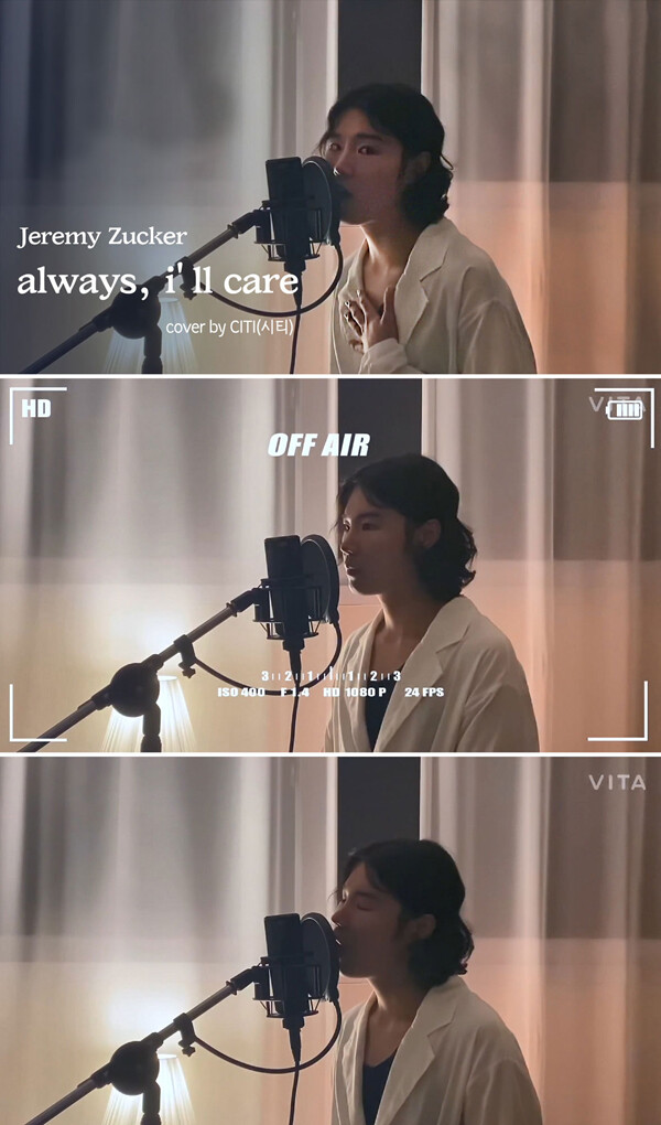 지난 23일 오후 CITI가 소속사 SNS 채널을 통해 Jeremy Zucker(제레미 주커)의 ‘always, i’ll care’ 커버 영상을 공개했다. CITI는 해당 영상과 함께 “저만의 감성으로 직접 만들어 본 영상이에요. 평안한 감상되시길 바랄게요!”라고 덧붙이며 커버 곡에 대한 애정을 드러냈다.