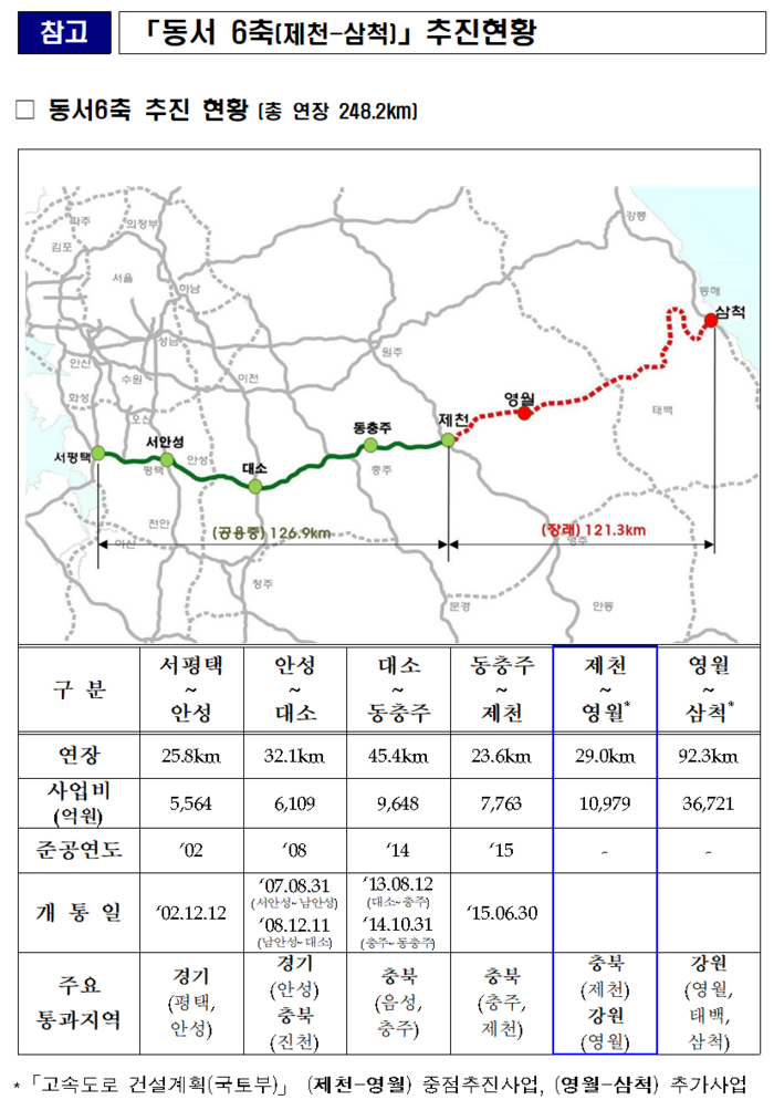 강원도는 26일 충청북도 제천시 금성면부터 강원도 영월군 영월읍까지 총연장 29.0km 규모의 4차로 ‘제천~영월 고속도로 사업’이 기획재정부 예비타당성 조사를 통과했다.