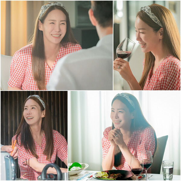이와 관련 김정은이 우아한 미모에 빛나는 미소를 장착한 심재경의 첫 면모로 시선을 집중시키고 있다. 극중 심재경이 남편과의 저녁 식사 준비에 한창인 장면. 체크무늬 패턴 블라우스에 반다나 헤어밴드를 두른 차림새로 러블리함을 드러낸 심재경은 남편과 함께하는 단 둘 만의 식사 시간이 더 없이 즐거운 듯 얼굴 가득 환한 미소를 띠고 있다. 이처럼 소박하고 따뜻한 일상을 즐기던 ‘평범한 주부’ 심재경이 어떤 연유로 희대의 납치 사건에 휘말린 것인지 궁금증이 증폭되고 있다.