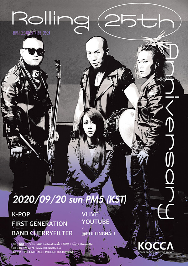 한편, '롤링 25주년 기념 공연 : 체리필터 온라인 단독 콘서트'는 네이버 브이라이브 플러스를 통해 실황 생중계되며, V LIVE와 모바일 V앱(브이앱)을 통해 다시보기(VOD) 서비스된다. [사진 롤링홀 제공]