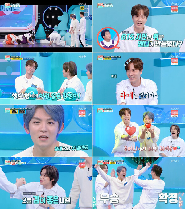 지난 14일(월) 저녁 8시 30분 방송된 KBS 2TV ‘퀴즈 위의 아이돌’(연출 박현진)(이하 ‘퀴즈돌’)은 다국적 K-POP 아이돌들이 퀴즈 우승을 차지하기 위해 불꽃 튀는 퀴즈 대결을 펼치는 프로그램. 선배돌 김종민, 강남, 닉쿤, 보미에 맞서는 대항마로 신화 앤디와 틴탑 니엘, 창조, 리키가 출연해 선배돌과 후배돌의 탈을 쓴 조상돌의 흥미진진한 퀴즈 배틀을 펼쳤다.