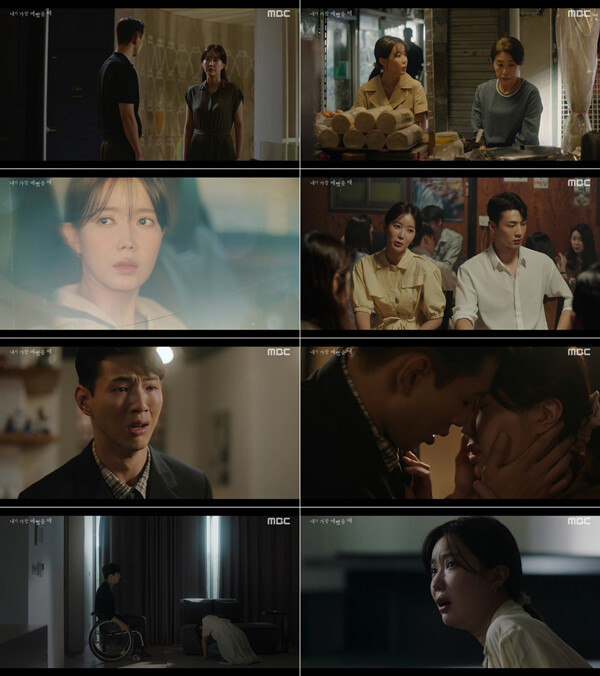 지난 16일 방송한 MBC 수목 미니시리즈 ‘내가 가장 예뻤을 때’(연출 오경훈, 송연화/극본 조현경/제작 메이퀸픽쳐스, 래몽래인)(이하. ‘내가예’) 8회에서는 오예지(임수향 분)와 서환(지수 분)이 갈등을 넘어 서로에게 진심을 전하는 모습으로 시청자들을 안타깝게 하는 한편 휠체어에 탄 서진(하석진 분)이 등장해 충격을 선사했다. 그야말로 휘몰아치는 전개였다.