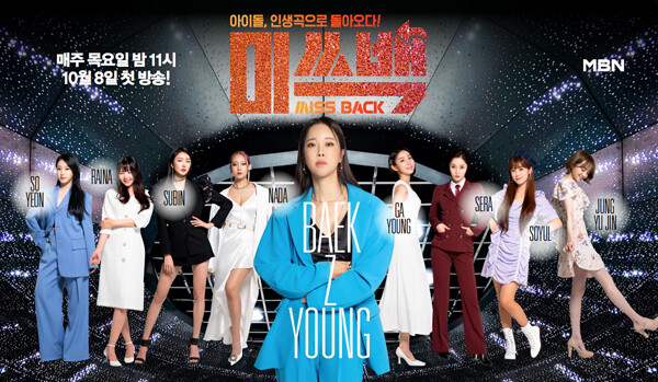 오는 10월 8일(목) 밤 11시에 첫 방송되는 MBN 새 예능프로그램 '미쓰백(Miss Back)'(기획 남성현 / 연출 안동수, 김지은)은 사람들의 기억 속에 조금씩 잊혀 간 여자 아이돌 출신 가수 8명이 다시 한번 도약을 꿈꾸는 이야기로, 그동안 미처 말하지 못했던 숨겨진 이야기는 물론 인생 곡으로 '제2의 전성기'가 될 터닝포인트를 함께하는 신개념 다큐테인먼트(휴먼다큐+쇼버라이어티) 프로그램이다.