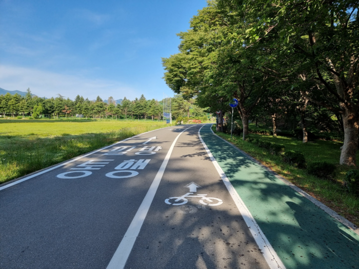 [시사투데이 김준 기자] 속초시는 24일 관내 시민들의 휴식공간으로 사용되고 있는 영랑호 유원지 내 자전거도로에 대해서 차선도색공사를 완료했다.