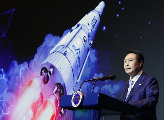 윤 대통령은 "세계 5대 우주기술 강국으로 도약하기 위해 누리호 보다 강력한 차세대 발사체를 개발하고, 발사체와 위성의 핵심 부품에 대한 기술 자립을 이룰 것"이라고 했다.