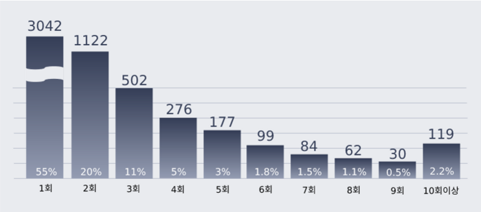 범죄 가담 건수의 경우 1회 가담자는 3042명(55.2%), 2회 이상 가담자는 2천471명(44.8%)으로 나타났다. 범죄자 한 사람이 최대 34건의 각기 다른 범죄에 가담한 사실도 드러났다.
