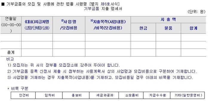 이번 개정안을 통해 기부금품 모집단체는 모집 연월일, 지급처명, 사업내용 등을 상세하게 기재해야 한다.