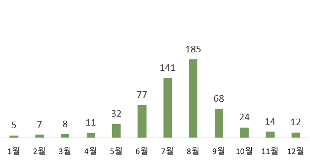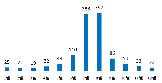 화재 발생을 시간대별로 보면 에어컨·선풍기 모두 기온이 높은 오후 시간대에 화재 건수가 많았으나 이른 시간인 오전 9시부터 늦은 밤까지도 꾸준히 발생헤 지속적인 주의가 필요하다.