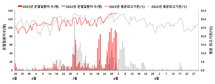 지난 5월 20일부터 8월 2일까지 감시체계로 확인된 온열질환자는 1385명으로 전년 동기간 1074명 대비 29% 늘었다.