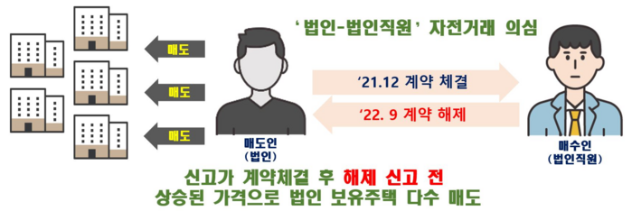 이 결과 자전거래·허위신고 의심거래 32건을 비롯해 총 541건의 법령 위반 의심사례를 적발했다. 아파트 가격 급상승기였던 2021년 1월부터 2022년 1월까지 거래된 적발 건이 전체 적발 건 중 약 80%를 차지했다.