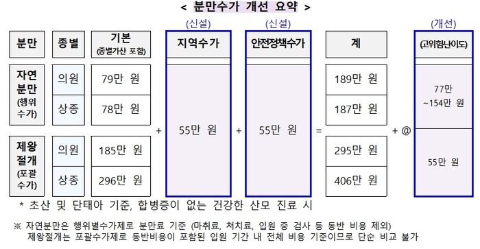 분만수가 개선은 현장에 신속한 적용이 필요하다는 목소리를 적극 반영해 11월 중 건강보험 고시 개정을 거쳐 12월부터 적용될 예정이다.