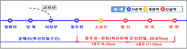 수도권 전동차의 연천 연장 운행으로 동두천~연천 구간을 오가는 소요시간이 기존 30분에서 17분으로 13분 단축될 예정이다.