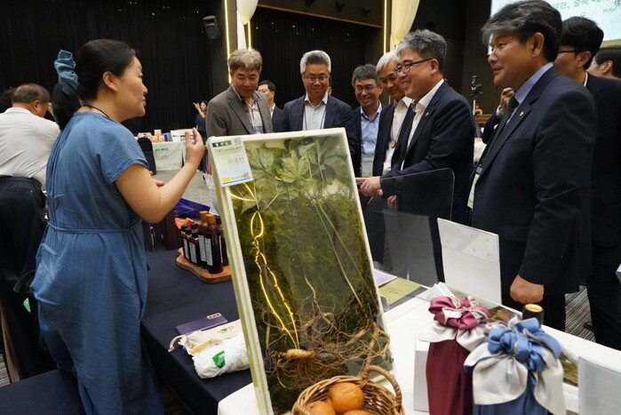 [시사투데이 이윤지 기자] 임상섭 산림청장이 13일 대전 선샤인호텔에서 '2024 청정임산물 품평회'를 개최하고 행사에 참여한 임업인들을 격려하고 있다.<사진=산림청 제공>
