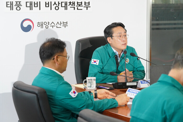 [시사투데이 이윤재 기자] 강도형 해양수산부 장관은 제9호 태풍 '종다리'가 우리나라로 북상함에 따라 20일 오전 10시 30분 해수부 종합상황실에서 해양수산분야 태풍피해를 줄이기 위한 대비 상황을 점검하고 인명피해 예방을 위한 선제적 안전조치를 당부했다.