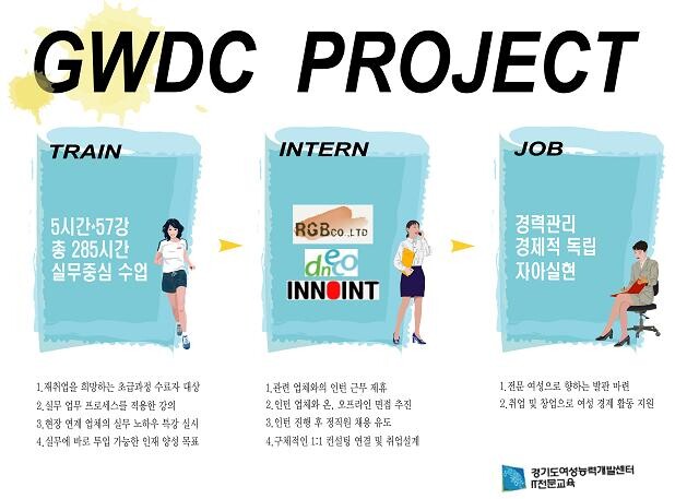 경기도여성능력개발센터(소장 조정아 www.womenpro.or.kr)에서는 IT전문교육 프로젝트 과정을 개설하여 IT기술교육을 받은 3,40대 기혼 여성들이 일선 현장업체에서 실무를 익힐 수 있는 인턴근무제를 도입하였다.