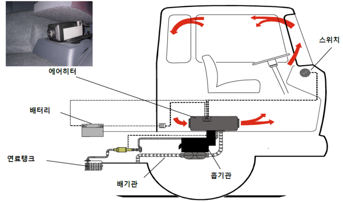 무시동에어컨과 무시동히터는 화물차량에 시동을 걸지 않고 냉방과 난방이 가능한 장치다. 상하차 대기 중 또는 야간 휴식 중에 공회전으로 인해 발생하는 미세먼지와 연료 소모량을 획기적으로 줄일 수 있다.