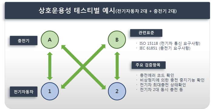 충전기 제조사인 대영채비, 시그넷이브이, PNE시스템즈, 중앙제어, 클린일렉스, 한국알박도 참여해 전기차와 충전기 교차검증 시험을 통해 상호운용성을 강화한다.