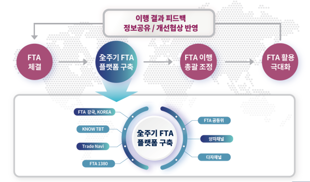 다양한 채널에서 모아지고 있는 FTA 활용 애로를 ‘전주기 FTA 플랫폼’에서 통합 관리하고 산업계와 정부가 긴밀하게 소통하기 위한 시스템을 구축한 것이다.