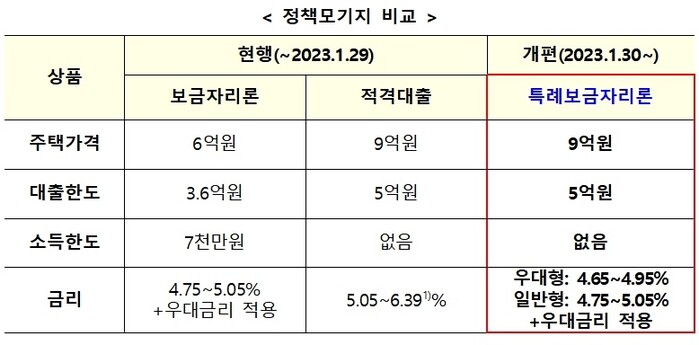 주택가격 9억원 이하면 소득과 무관하게 최대 5억원까지 대출을 받을 수 있다.