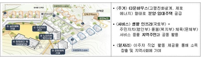 지역활력타운은 다양한 유형(단독주택·타운하우스 등)과 공급방식(분양·임대)으로 주거를 제공하고 문화·복지 등 필수 생활서비스를 통합적으로 지원할 계획이다.