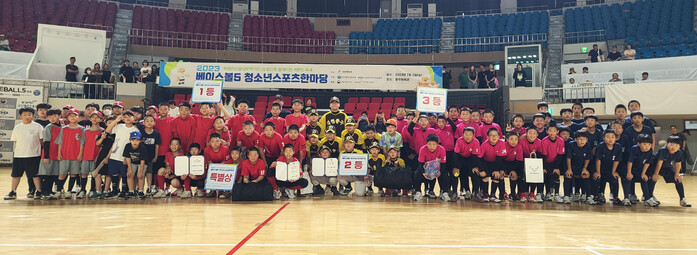 지난 2일 개전 충무체육관에서 열린 '2023 청소년스포츠한마당 대전 베이스볼5' 대회는 초등부 12개팀 100여 명이 참가했다.